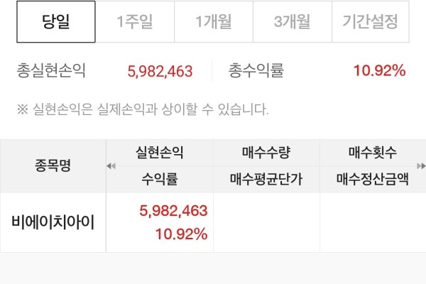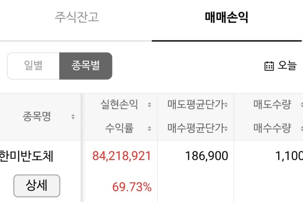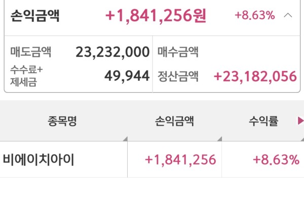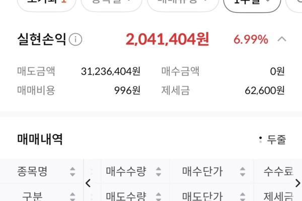 일하느라 문자를 늦게 봣는데 하필 올랐다가 거의 보합근처 왔을때 패닉셀 해버려서 수익률이 크진않습니다 (제가팔고나니 다시 올라가네요..) 다음에는 익절사인나면 바로 팔수있게 해보겠습니다!!