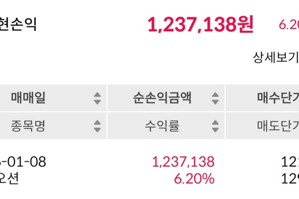 단기에 익절하고 1월달에만 벌써 몇번째 수익 후기인지.... 아주 기분이 좋습니다. 항상 감사드립니다!